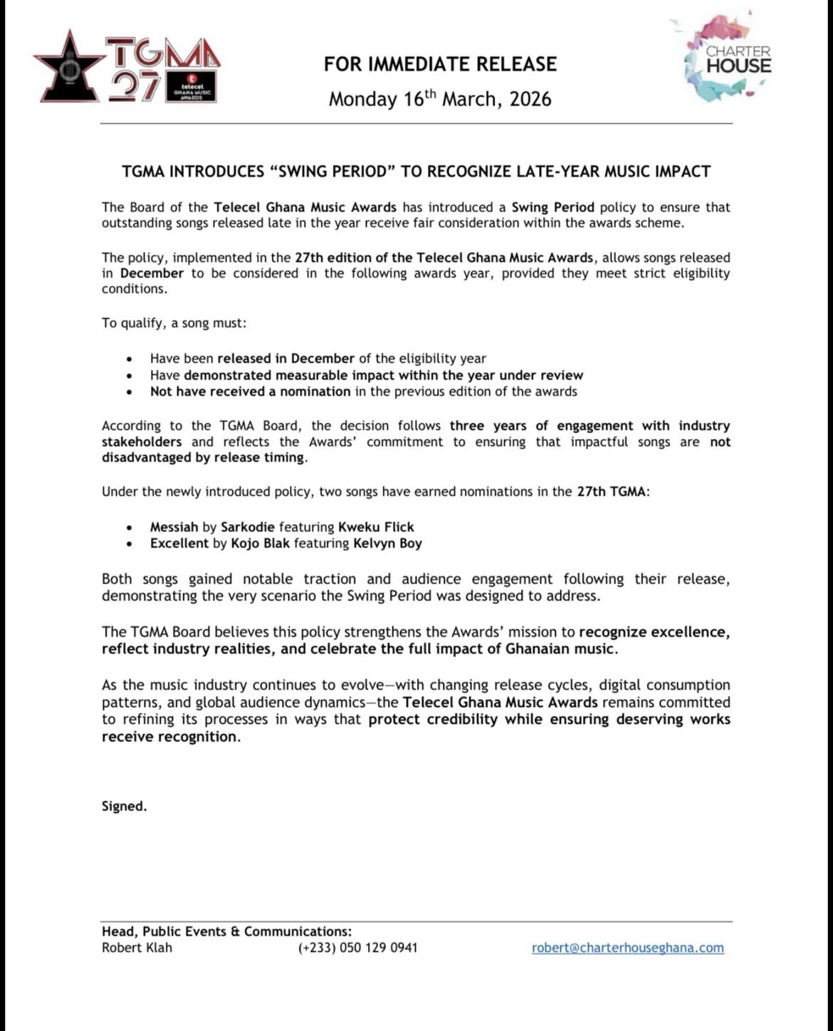 The Board of the Telecel Ghana Music Awards has introduced