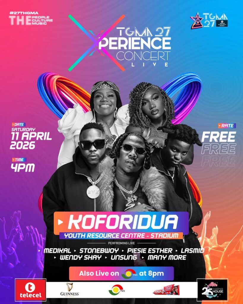 This year, the Eastern Region takes center stage as Koforidua hosts the TGMA 27 Xperience Concert Live at the Youth Resource Centre – Stadium on Saturday, 11th April 2026 at 4pm.
